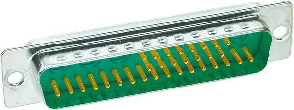 Steckverbinder, Lötkelchanschluss, Bemessungsstrom: ?5 A, Stift, Baugröße: D-Sub 5, Thermoplastischer Formstoff, glasfaserverstärkt (Polyester), Shell: Stahl, verzinnt, grün, Kontakte: 43, Leiterquerschnitt: 0,5 mm², Kupferlegierung, Edelmetall über Ni