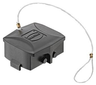 | Kurzbeschreibung | Abdeckkappe, für Anbaugehäuse, für Sockelgehäuse, für Kupplungsgehäuse, mit Befestigungsschnur (Schlaufe), Baugröße: 6 B, Querbügel |