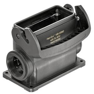 | Kurzbeschreibung | Sockelgehäuse, Baugröße: 16 B, Längsbügel, Polyamid (PA), glasfaserverstärkt, seitlicher Kabeleingang, 2x M32 |