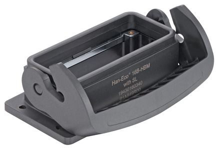 Anbaugehäuse, Baugröße: 16 B, Längsbügel, Polyamid (PA), glasfaserverstärkt, Werkstoff Gehäuse: Polyamid (PA), glasfaserverstärkt, RAL 9005 (tiefschwarz), Werkstoff Dichtung: NBR