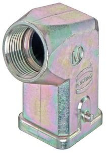 Tüllengehäuse, für Han-Brid, mit eingeklebter Dichtung, Baugröße: 3 A, Längsbügel, seitlicher Kabeleingang, 1x M20, Werkstoff Gehäuse: Zink-Druckguss, unbeschichtet, unlackiert, Werkstoff Dichtung: NBR