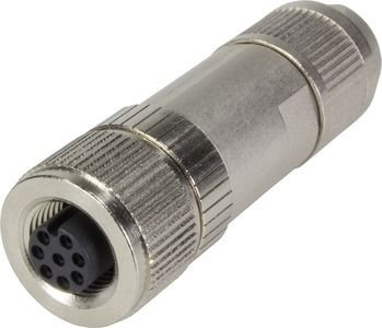 Kabelsteckverbinder, gerade, Buchse, A-Kodierung, Schneidklemmanschluss, Polyamid (PA), Kontakte: 8, Messing Au über Ni steckseitig, Leiterquerschnitt: 0,14...0,34 mm², Bemessungsstrom: 2 A, Zink-Druckguss, Schraubverriegelung, Schutzart: IP65 / IP67 im gesteckten Zustand