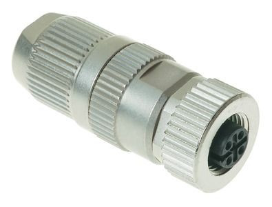 Kabelsteckverbinder, gerade, Buchse, A-Kodierung, HARAX Anschlusstechnik, Polyamid (PA), Kontakte: 4, Messing Au über Ni steckseitig, Leiterquerschnitt: 0,14...0,34 mm², Bemessungsstrom: 4 A, Zink-Druckguss, Schraubverriegelung, Schutzart: IP65 / IP67 im gesteckten Zustand