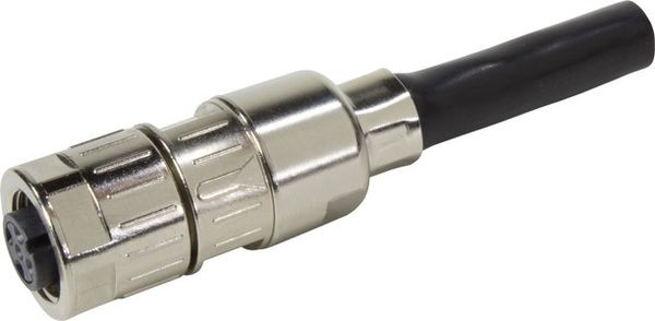 Kabelsteckverbinder, gerade, Buchse, D-Kodierung, Crimpanschluss, Liquid-crystal polymer (LCP), Kontakte: 4, Leiterquerschnitt: 0,13...0,82 mm², Bemessungsstrom: 4 A, Zink-Druckguss, Schraubverriegelung, Schutzart: IP65 / IP67 im gesteckten Zustand