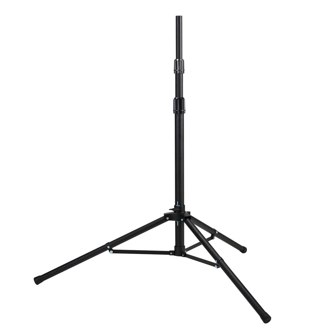 mit schwarzer Tragetasche. Das stabile, schwarze Stativ aus Aluminium ist stufenlos höhenverstellbar bis zu einer maximalen Höhe von zwei Metern.Zusammengeklappt hat es eine Höhe von circa einem Meter.Aufgrund der drei Standfüße mit Gummischutz hat das Stativ einen äußerst stabilen Stand.