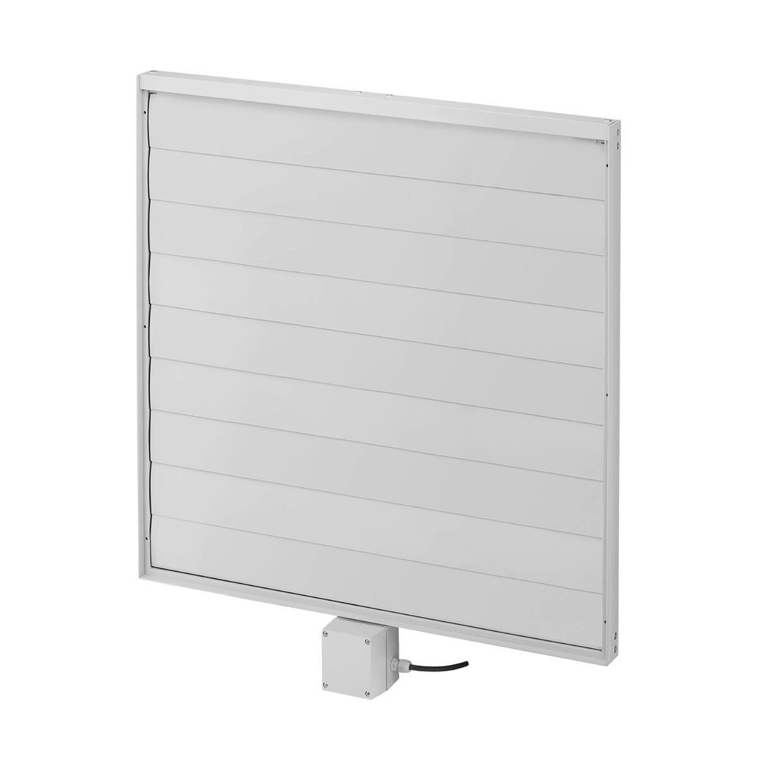 Zur Abdeckung von Zu- und Abluftöffnungen. Rahmen, Lamellen und Stellglieder aus hellgrauem Kunststoff, Stellwerkgehäuse in IP 45 für Montage im Freien. Je nach Größe variiert die Anzahl der Lamellen. Steuerung automatisch mit Ventilator: Ortsgebundener Wechselschalter schaltet den Stellmotor, der über einen Endschalter den Ventilatorkreis schaltet. Stellwerk komplett verdrahtet, mit 1,5 m Anschlusskabel ausgerüstet. 230 V, 50/60 Hz.