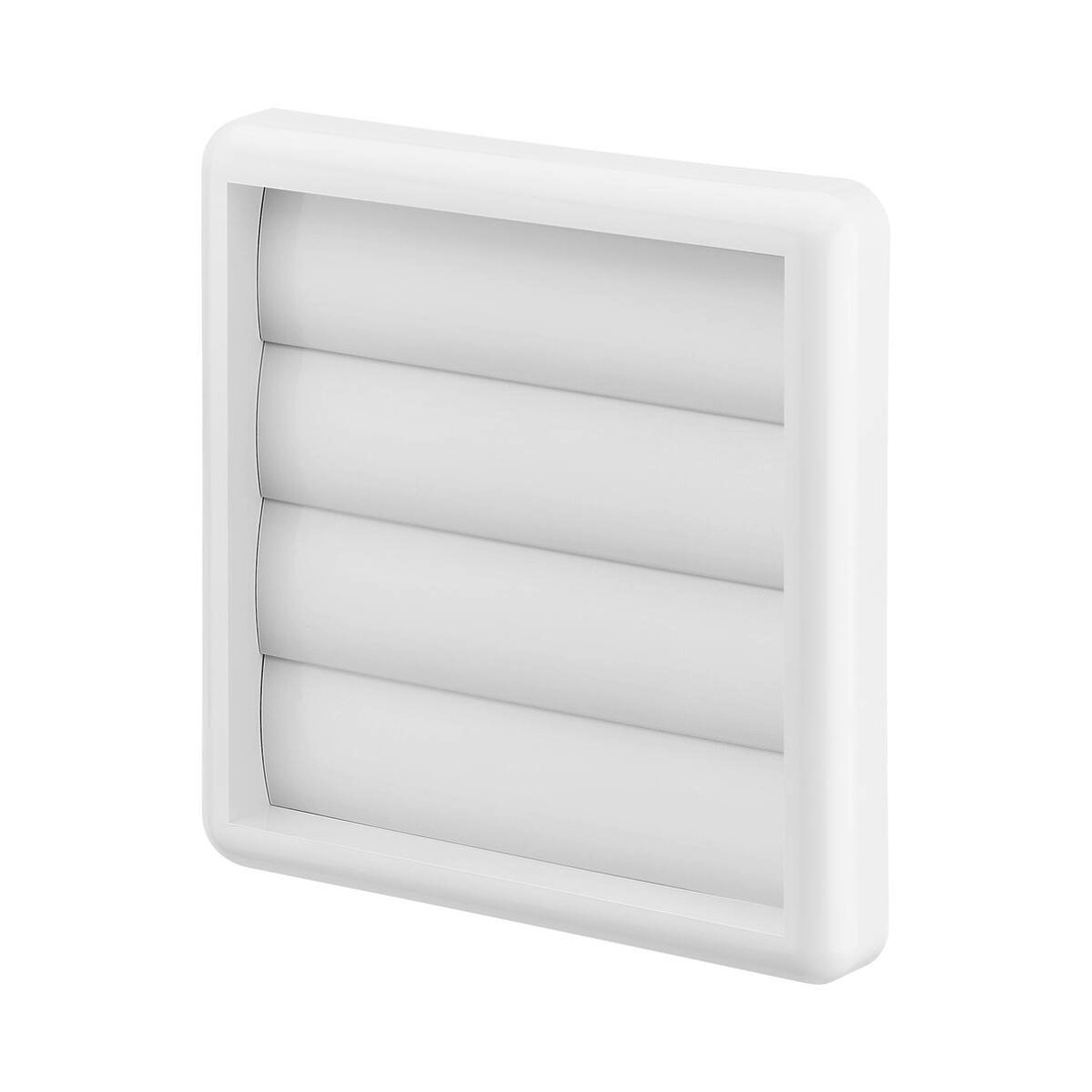 Überdruckklappen in Flachbauweise für Außenwandmontage. Automatisch mit Ein-/Ausschalten des Ventilators öffnend und schließend. Aus UV-beständigem, bruchfestem Kunststoff.