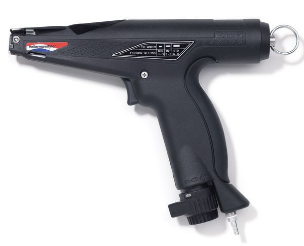 Pneumatisches Verarbeitungswerkzeug. Leichtes glasfaserverstärktes Kunststoffgehäuse. Ergonomisches Design. Für Kabelbinder bis 4,8 mm Breite. Prozesssicheres Spannen und automatisches bündiges Abschneiden. Stufenlose Zugkraftverstellung kombiniert mit dreistufiger Schnellverstellung. Hohe Abbindegeschwindigkeit. Das pneumatische Bündelwerkzeug MK7P setzt Maßstäbe für die rationelle Bündelung im industriellen Fertigungsprozess. Durch eine optimierte Druckluftzufuhr bewegt sich der Zugkolben schneller als bei vergleichbaren Werkzeugen.