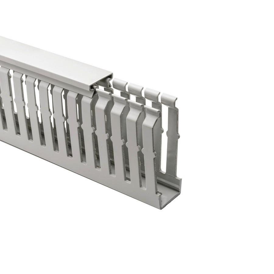 Ausgezeichnete Brandschutzeigenschaften. Schmale Schlitze, die für Drähte mit kleinem Durchmesser geeignet sind. Glatte, gratfreie Kanten schützen Installateure vor Verletzungen und Kabeln vor Beschädigungen. Einfache Entfernung der Stege ohne scharfe Kanten durch Sollbruchstellen. Kanalabdeckungen halten selbst in vertikaler Position und unter Vibration sicher. Der Deckel ist mit der Seite des Kanals bündig und ermöglicht eine enge, zusammenhängende Platzierung des Kanals. Bodenlochung nach DIN EN 50085. HellermannTyton halogenfreie Verdrahtungskanäle werden an Orten mit hohen Personenkonzentrationen, hohen Sachwerten oder hohen Sicherheitsanforderungen eingesetzt. Hierzu zählen z.B. Tunnelanlagen, öffentliche Verkehrsmittel, Aufzugsanlagen und Rechenzentren. Hinweis: Halogenfreies PC+ABS ist nicht gegen alle Öle und Fette beständig.