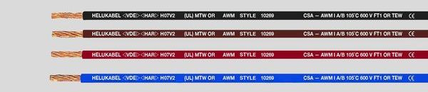 PVC-Einzelader nach DIN VDE 0285-525-2-31/ DIN EN 50525-2-31, UL Std.1063, UL Style 10269 (dadurch Style 1015 erweitert) und CSA-TEW bzw. CSA-AWM I A/B