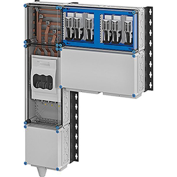 Wechselrichter-Sammler nach IEC 61439 für PV-Anlagen werden anschlussfertig geliefert. Die Gehäuse aus hochwertigem Thermoplast sind schutzisoliert, Schutzart IP 54. Wechselrichter-Sammler können um die Funktion Blitz- und Überspannungsschutz erweitert werden. Sie sind für die geschützte Installation im Freien geeignet und UV-beständig. PV-Wechselrichter-Sammler bis 220 kVA mit NH 000-Sicherungslasttrennschalter. Max. 6 x 3~ Wechselrichter. Wandbefestigung über Montageschienen aus verzinktem und pulverbeschichtetem Stahlblech.