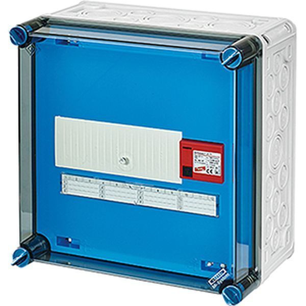 Funktionsgehäuse als Überspannungsschutzgehäuse mit 1 x Überspannungsableiter Typ 1+2. Deckelverschlüsse für Handbetätigung.