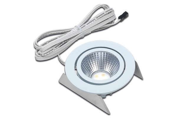 Schwenkbarer LED-Einbaustrahler, Metall-Gehäuse, Anschlussleitung 2,5m mit Dynamic-Stecker, Lichtfarbe einstellbar zwischen ca. 2700K und 5000K, schnelle und einfache Montage durch Federklemmen, Steuerung über diverse Funk-Fernbedienungen, DALI oder WiFi-Controller