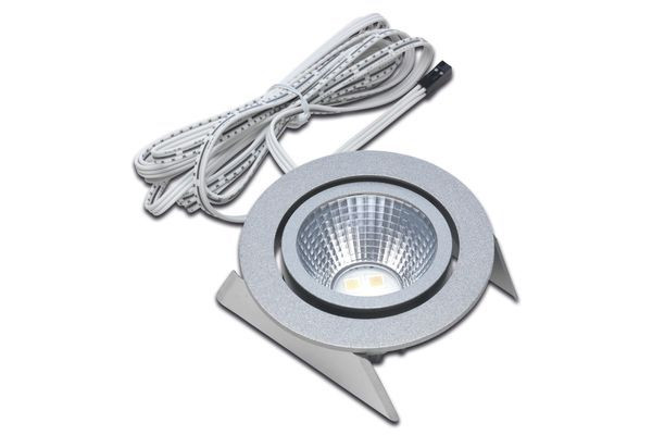 Schwenkbarer LED-Einbaustrahler, Metall-Gehäuse, Anschlussleitung 2,5m mit Dynamic-Stecker, Lichtfarbe einstellbar zwischen ca. 2700K und 5000K, schnelle und einfache Montage durch Federklemmen, Steuerung über diverse Funk-Fernbedienungen, DALI oder WiFi-Controller