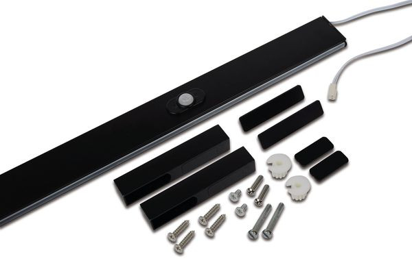LED-Kleiderstangenleuchte mit Bewegungsmelder, Gehäuse Alu, individuell kürzbar, Anschlussleitung 2,5m mit LED 24-Stecker, Lichtfarbe neutral weiß ca.4000K, Befestigung seitlich und unter dem Boden möglich.