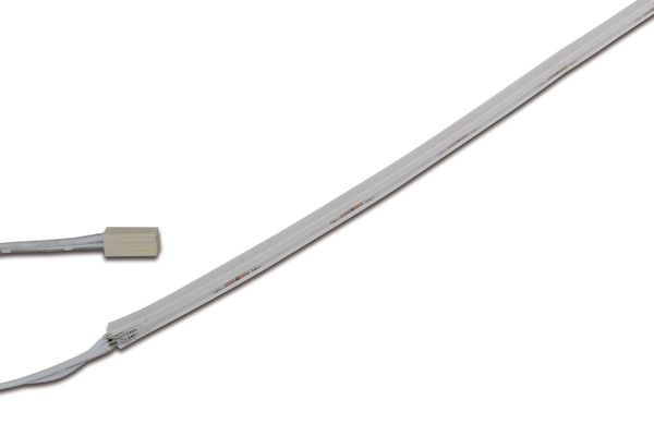 Flexibles LED-Band auf Rolle, Lichtfarbe warm weiß ca. 3000K mit Flächenlicht ohne sichtbare LED Punkte, schnelle und einfache Montage in einer 3mm breiten und 7mm tiefen Fräsnut, inkl. Anschlussleitung 2,5m mit LED 24-Stecker, das Band kann überall (FreeCut) abgeschnitten werden, optionales Zubehör: Dimm-Controller mit Funkfernbedienung, 1-10V, DALI, ZigBee, Sonar oder BLE Steuerung