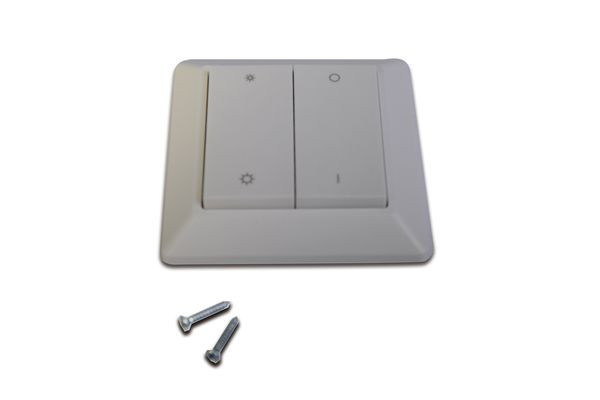 Wandtaster Dimm, kann auf beliebig viele Zigbee / Alexa Controller angelernt werden, mit Piezo-Taster / ohne Batterie, zum Anschrauben oder Ankleben mit beiliegendem Klebepad und kompatibel zu den Rahmen folgender Schalterprogramme: BERKER S1, B1, B3, B7 Glas / GIRA Standard 55, E2, Event, Esprit / JUNG A500, Aplus / MERTEN M-smart, M-Arc, M-Plan