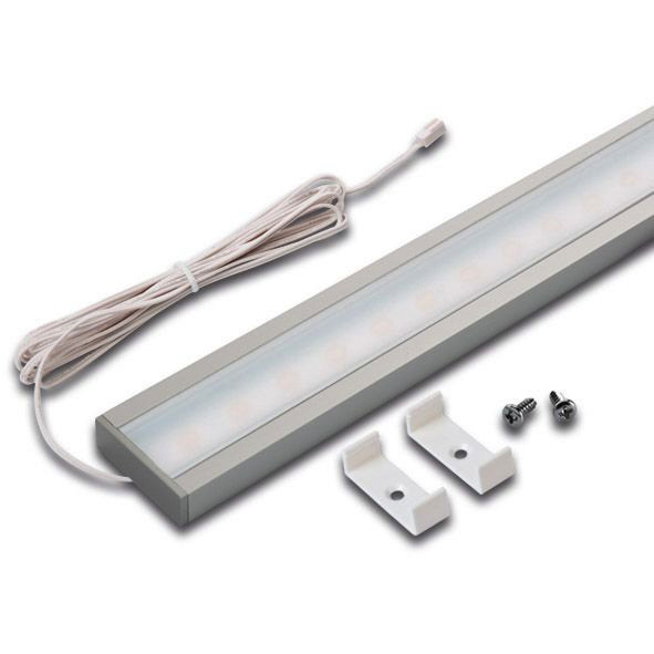 Flache LED-Anbauleuchte, Gehäuse Alu, Anschlussleitung 2,5m mit LED 24-Stecker, Lichtfarbe neutral weiß ca.4000K, optionales Zubehör: dimmbarer Trafo mit Funkfernbedienung oder 1-10V Dimmer
