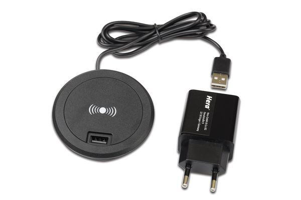 Qi Fast-Charger mit zusätzlicher USB Steckdose, Anschlussleitung 1,2m + Netzteil
