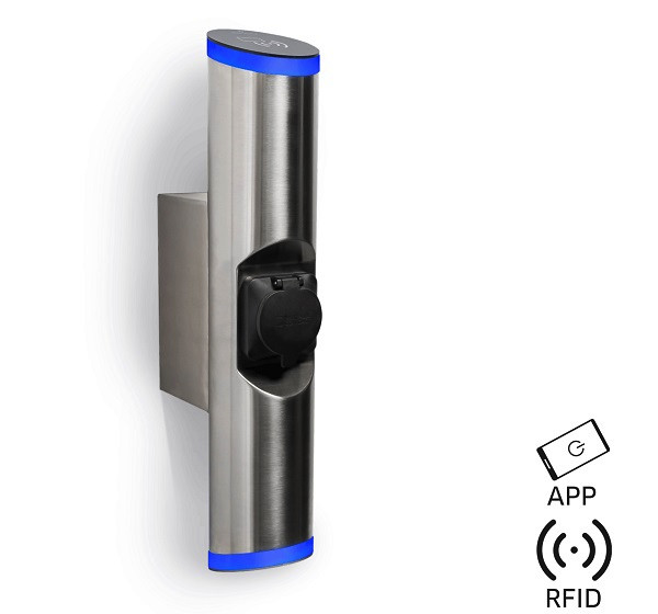 Wallbox, Ausrichtung senkrecht, Ausführung BASE, Edelstahl gebürstet, max. Ladeleistung 22kW, max. Ladestrom 32A, DC-Fehlerstromerkennung, im Innen- und Außenbereich frei positionierbar, Autorisierung über RFID oder Smartphone über eCC App (electrify Charge Control), Plug and Start, WLAN und digitale Eingänge, Master / Slave via electrify Mesh, Modbus TCP, 4 Meter Ladekabel (Typ 2), Klimasystem durch Axiallüfter und Heizung, Schutzart IP 54, einfache Montage, incl. 1x RFID-Karte, Wandadapter zur Aufputzinstallation, Befestigungsmaterial, Adapter digitale Eingänge, Gerätepass, Montagekurzanleitung