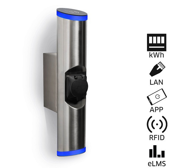 Wallbox, Ausrichtung senkrecht, Ausführung SMART, Edelstahl gebürstet, max. Ladeleistung 11kW, max. Ladestrom 16A, MID-konformer Energiezähler, DC-Fehlerstromerkennung, im Innen- und Außenbereich frei positionierbar, Autorisierung über RFID oder Smartphone über eCC App (electrify Charge Control), Plug and Start, LAN und WLAN und digitale Eingänge, Master / Slave via electrify Mesh, Modbus TCP, OCPP Einbindung, kostenloses Backend über eLMS (electrify Lademanagementsystem), 4 Meter Ladekabel (Typ 2), Klimasystem durch Axiallüfter und Heizung, Schutzart IP 54, einfache Montage, incl. 2x RFID-Karte, Wandadapter zur Aufputzinstallation, Befestigungsmaterial, Adapter digitale Eingänge, Gerätepass, Montagekurzanleitung