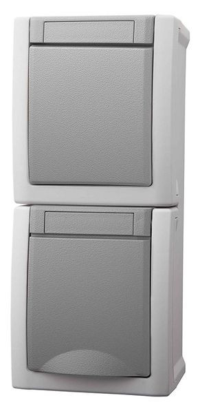 | Kurzbeschreibung | Kombi Steckdose/Wechselschalter senkrecht Aufputz IP 54 grau |