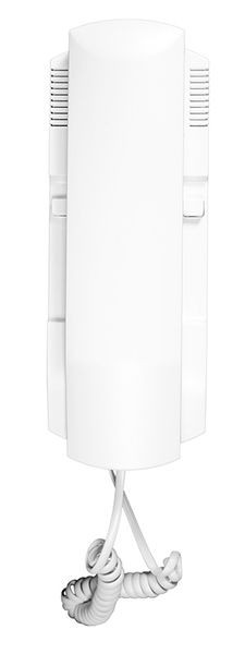 Aufputz-Audio-Innenstation mit Hörer für das Villa 2-Draht-System. Zur Wandmontage geeignet, ausgestattet mit Mikrofon, Lautsprecher und Tasten für Sprechen, Türöffner und Internruf. Ruftonauswahl sowie Ruftonlautstärkeregler integriert. Einsatz im Parallelbetrieb zum Monitor als Nebensignalgerät möglich. Zur Montage auf UP-Dose geeignet, Etagentaster anschließbar. Farbe: Weiß, Abmessung: 112 x 87 x 23 mm.