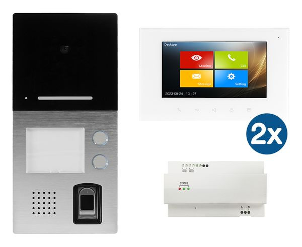 | Kurzbeschreibung | Video Aufputz 2-Fam. Set mit Fingerprint und BT 2-Draht |