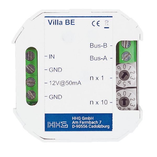 (Energieversorgung für evtl. Sensoren) mit 12 V DC und einer max. Belastung von 50 mA, für das Villa 2-Draht System, Abmessungen: 49 x 51 x 22 mm, Schutzart IP 20