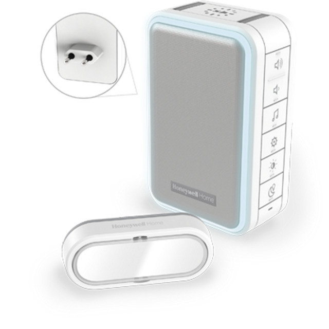 Serie 3 Einfache Installation - keine Verdrahtung erforderlich, kompaktes Design, Funkreichweite von bis zu 150 m (bei Feldbedingungen gemessen, Wände, Zimmerdecken und Metallstrukturen reduzieren die maximale Reichweite), Honeywell-ActivLink für zuverlässige Funkreichweite, digital verbesserter Klang mit Lautstärkeregelung. maximale Lautstärke von 84 dB, Hörbereich bis zu 80 m, Auswahl von 6 Melodien, Schlaf-/Stummmodus, optische Meldung durch HALO-Lichtring mit zusätzlichem LED-Blitzlicht, inklusive Halterungen, bis zu 2 Jahre Batterielebensdauer. Set enthält: Funk-Gong und Klingeltaster (inkl. Batterie CR2032 des Klingeltasters), Nachtlichtmodus mit Farbauswahl, bis zu 2 A Micro-USB-Ladestation, Stromversorgung: 100-240 V 50-60 Hz 300 mA