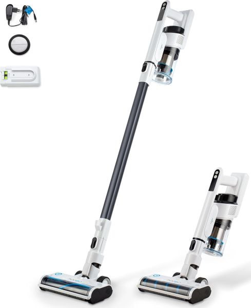 2in1: Akku- und Handstaubsauger in einem Gerät, High-Performance-Digitalmotor, Multizyklon-Technologie für konstant hohe Saugleistung, LED-Display mit Ladestands- und Leistungsanzeige, 3 Leistungsstufen (Eco, Standard, Power), Elektrobürste mit LED-Beleuchtung und Selbstreinigungsfunktion, Möbel & Polster-Kombi-Düse, Fugendüse ca. 25 cm lang, waschbarer Lifetimefilter, Ersatzfilter, entnehmbarer Lithium-Ionen-Akku mit Überladeschutz, Laufzeit bis zu 50 Min. (eco)