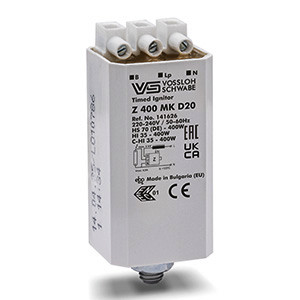 Überlagerungszündgerät Z400MKD20 HS/C-HI 70-400W HI 35-400W, Abschaltautom., Schraubklemmen, IPP, Kunststoffgehäuse Mit Abschaltautomatik kompakte Bauform Phasenlage des Zündimpulses: 60-90 °el und 240-270 °el Max. zul. Gehäusetemperatur: 105°C Befestigung: Gewindebolzen mit vormontierter Zahnscheibe und Mutter Schutzklasse I und II Max. zulässiges Drehmoment: 0,8 Nm