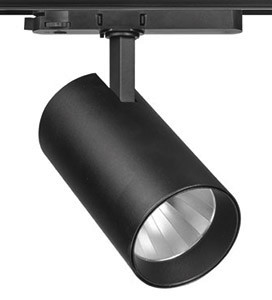 LED-Schienenstrahler T45, 38 W, schwarz Einsatzmöglichkeiten: Autohäuser, Fashion Shops, Showrooms, Kaufhäuser, Supermärkte, Museen, Messen etc.