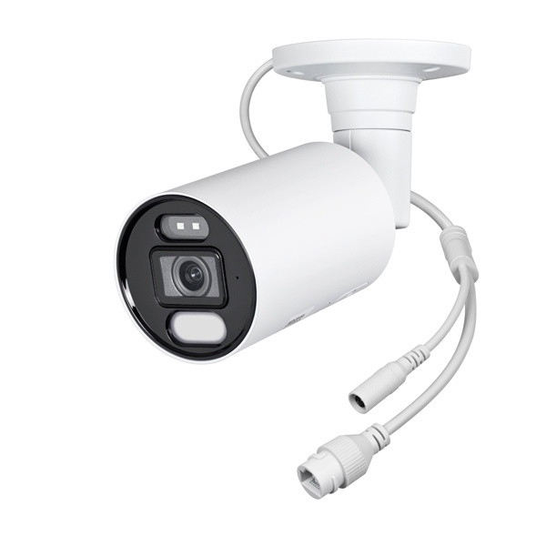 8 Megapixel Low-Light Netzwerkkamera (8MP IP-Kamera mit KI-Funktionen) für innen oder außen (IP66) zur Wand- und Deckenmontage, mit 1/1,8 Zoll CMOS Sensor, 4K-Auflösung 3840 x 2160 Pixel bei bis zu 25 Bps, mind. Beleuchtung bei F1.0: 0,0005 Lux (Farbe). Geeignet für Stellen, wo geringes Restlicht vorhanden ist: Die Aufnahme bleibt auch nachts in Farbe, keine Infrarot-Funktion.i. Mit 2,8mm Fix-Objektiv (horizontaler Erfassungswinkel 110°). Weiße LED-Strahler (400 Lumen, bis zu 25m, bei Bedarf zuschaltbar, ausschließlich zur Bildaufnahme). Mit 120dB WDR- und Smart-KI-Funktionen, z.B. zur Erkennung von Menschen und Fahrzeugen. Lokale Bildspeicherung auf microSD-Karte (max. 256GB, nicht im Lieferumfang) möglich. Mit eingebautem Mikrofon und Lautsprecher. Kompatibilitätsstandard: ONVIF 22.06. Zugriff über App, Client Software oder Browser. Fernzugriff (Internetverbindung erforderlich) über P2P (ohne feste öffentliche IP-Adresse) oder DynDNS / Portweiterleitung. App für iOS (App Store) und Android (Play Store, Google-Version) kostenlos erhältlich (nicht Teil des Produkts, keine Zusage eines Servicelevels). Spannungsversorgung: PoE 802.3af (Leistungsaufnahme max. 6,5W) oder 12V DC (Stromaufnahme max. 450mA) über ca. 30cm lange Kabelpeitsche. Inkl. Halterung mit innenliegender Kabelführung. Farbe: weiß ähnlich RAL 9003. Gehäuseabmessungen: D 80 x 117mm. Passendes Zubehör: Anschlusskasten AK305, AK306, Masthalterung MH153 (auf AK306), Powerline-Adapter mit PoE NWPL01-POE.