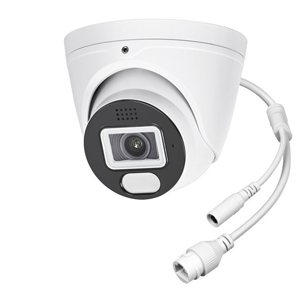 8 Megapixel Low-Light Netzwerk-Kugelkamera (8MP IP-Kamera mit KI-Funktionen) für innen oder außen (IP66) zur Wand- und Deckenmontage, mit 1/1,8 Zoll CMOS Sensor, 4K-Auflösung 3840 x 2160 Pixel bei bis zu 25 Bps, mind. Beleuchtung bei F1.0: 0,0005 Lux (Farbe). Geeignet für Stellen, wo geringes Restlicht vorhanden ist: Die Aufnahme bleibt auch nachts in Farbe, keine Infrarot-Funktion.i. Mit 2,8mm Fix-Objektiv (horizontaler Erfassungswinkel 110°). Weiße LED-Strahler (400 Lumen, bis zu 25m, bei Bedarf zuschaltbar, ausschließlich zur Bildaufnahme). Mit 120dB WDR- und Smart-KI-Funktionen, z.B. zur Erkennung von Menschen und Fahrzeugen. Lokale Bildspeicherung auf microSD-Karte (max. 256GB, nicht im Lieferumfang) möglich. Mit eingebautem Mikrofon und Lautsprecher. Kompatibilitätsstandard: ONVIF 22.06. Zugriff über App, Client Software oder Browser. Fernzugriff (Internetverbindung erforderlich) über P2P (ohne feste öffentliche IP-Adresse) oder DynDNS / Portweiterleitung. App für iOS (App Store) und Android (Play Store, Google-Version) kostenlos erhältlich (nicht Teil des Produkts, keine Zusage eines Servicelevels). Spannungsversorgung: PoE 802.3af (Leistungsaufnahme max. 7W) oder 12V DC (Stromaufnahme max. 550mA) über ca. 35cm lange Kabelpeitsche. Farbe: weiß ähnlich RAL 9003. Gehäuseabmessungen: D 117 x 105mm. Passendes Zubehör: Anschlusskasten AK306, Masthalterung MH153 (auf AK306), Powerline-Adapter mit PoE NWPL01-POE.