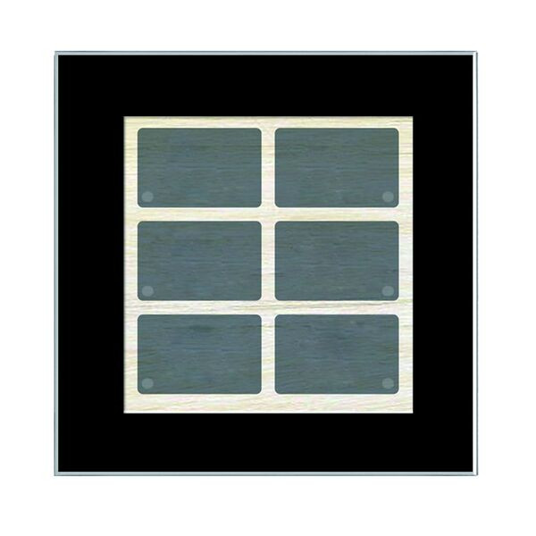 Das LCN-GT6 ist ein Glas-Tastenfeld. Es wird per mitgeliefertem Montageplatte auf eine UP-Dose montiert und mit einem Schieber fest verankert. Der Anschluss erfolgt über den T-Anschluss eines beliebigen LCN-Moduls ab Version 170212. Im Sensortastenfeld LCN-GT6 ist ein Temperatursensor integriert. Die 6 kapazitiv arbeitenden Sensorflächen sind hinter einer 5 mm starken Oberfläche angeordnet. Eine leichte Berührung der Oberfläche genügt, um Funktionen auszulösen. Eine in jede der 6 Sensorflächen integrierte LED informiert über den aktuellen Status beliebiger Aktoren oder Sensoren im Gebäude. Dabei sind vier Zustände möglich. Zusätzlich bietet das LCN-GT6 einen Corona®-Lichtkranz mit weißen LEDs für die Wandbeleuchtung (LCN-NUI erforderlich) und eine elegante blaue Hinterleuchtung (LCN-NUI erforderlich) der Tasten. So lässt sich das LCN-GT6 auch bei geringem Umgebungslicht komfortabel bedienen. Die individuellen Beschriftungen für das LCN-GT6 werden auf eine Folie oder Papier übertragen und durch einen kleinen Schlitz hinter der Glasfläche platziert. Die Beschriftung kann jederzeit neu erstellt werden, so dass Änderungen in der Tastenbelegung kein Problem sind. Leicht verständliche Symbole und Vorlagen für die Folie werden mitgeliefert. Die Sensorflächen des LCN-GT6 reagieren kapazitiv auf Berührung der Glasoberfläche. Je nach Berührungsdauer wird ein entsprechendes LCN-Steuerkommando (Kurz, Lang oder Los) versendet. Das Steuerkommando wird über den im Lieferumfang enthaltenen Montagerahmen an den T-Anschluss eines LCN-Moduls übertragen. Die 6 Status-LEDs in den Sensorflächen werden individuell über den T-Anschluss gesteuert und über LCN-PRO konfiguriert (An, Aus, Blinken, Flackern). Für die Tasten-Hinterleuchtung (optional) und den Corona®-Lichtkranz wird ein externes Netzteil benötigt (LCN-NUI, nicht im Lieferumfang enthalten). Der Einsatz eines Netzteil ist auch bei heller Umgebungsbeleuchtung sinnvoll; denn es erhöht die Helligkeit aller LEDs des LCN-GT6.