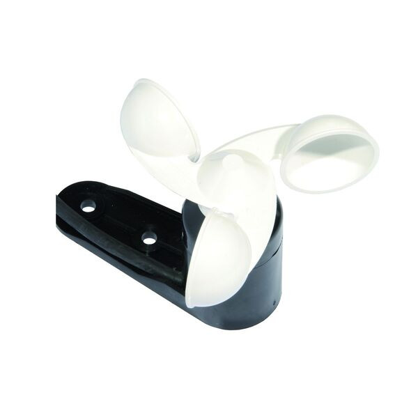 Windsensor (Windrad) ohne Prozessor bzw. Auswerteeinheit und wird mittels LCN Impulszählerkabel an den I-Anschluss eines LCN Busmoduls angeschlossen, das Gehäuse ist entsprechend witterungsbeständig ausgeführt und verfügt über eine etwa zwei Meter lange Anschlussleitung, wie auch Montagezubehör zur Wand- oder Mastbefestigung
