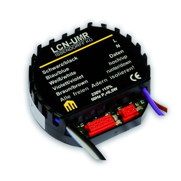 Das Rollladenmodul LCN-UMR ist ein Sensor-Aktor Modul zum dezentralen Steuern von Rollladen-/Jalousiemotoren. Es verfügt über zwei schaltbare, gegeneinander verriegelte 230V Relais-Ausgänge.Weiterhin verfügt das LCN-UMR über T- und I-Anschlüsse zur Aufnahme weiterer LCN Sensoren und Aktoren. Das interne Betriebsprogramm kann mittels der LCN-Systemsoftware LCN-PRO frei parametriert werden.