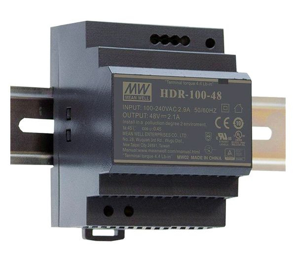 Hutschienennetzteil HDR Eingangspannung: 85-264V AC Ausgangsspannung: 24 DCAusgangsstrom: 4,2AGehäuseabmessung 70 x 90 x 54.5 mm (B x H x T)