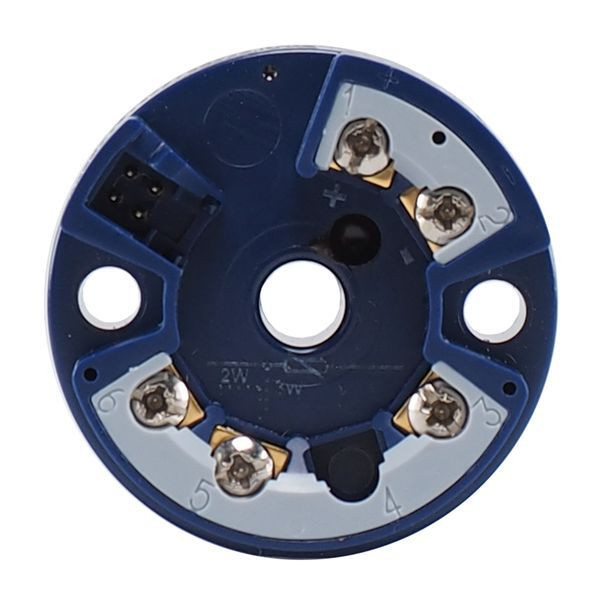 Analoger Zweidraht-Messumformer zum Einbau im Anschlusskopf Form B. Der für den industriellen Einsatz bestimmte Messumformer erfasst die Temperatur mit einem Widerstandsthermometer. Das Ausgangssignal steht temperaturlinear zur Verfügung. Der durchgehend analoge Signalpfad ermöglicht äußerst schnelle Reaktionszeiten des Ausgangs bei einer Temperaturänderung (analoge Dauermessung statt digitaler Messrate). Hieraus resultiert ein rauscharmes und störfestes Ausgangssignal. Höchste Präzision - selbst bei kleinen Messbereichen - wird durch die messbereichsspezifische Verstärkung sichergestellt. Die digitale Kommunikation ermöglicht die Anpassung der Messumformer an die Messaufgabe (Messbereich, Fühlerbruch und Feinabgleich).