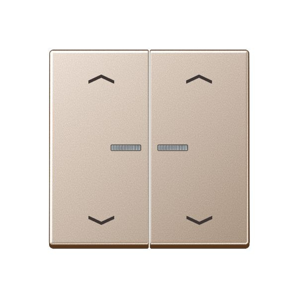 | Kurzbeschreibung | JUNG HOME Taster 2fach, mit Pfeilsymbolen, mit Lichtleiter, Duroplast lackiert, Serie A, champagner |