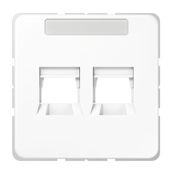 | Kurzbeschreibung | Abdeckung (gerastet) für Modular-Jack-Steckbuchsen, 2fach, EMT, AMP, MTRJ, mit Schriftfeld, Thermoplast, Serie CD, alpinweiß |