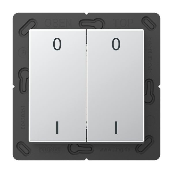 | Kurzbeschreibung | EnOcean Funk-Wandsender, 4-kanalig, Symbole 0 I, Thermoplast lackiert, Serie A, aluminium |