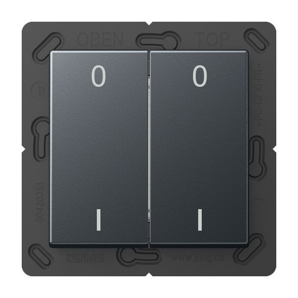 | Kurzbeschreibung | EnOcean Funk-Wandsender, 4-kanalig, Symbole 0 I, Thermoplast lackiert, Serie A, anthrazit matt |