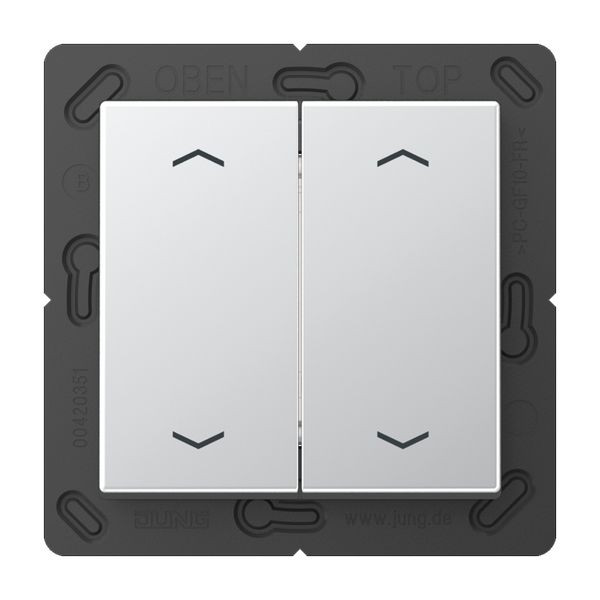 | Kurzbeschreibung | EnOcean Funk-Wandsender, 4-kanalig, mit 4 Pfeilsymbolen, Thermoplast lackiert, Serie A, aluminium |