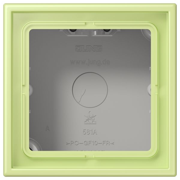 | Kurzbeschreibung | Aufputz-Kappe 1fach, LS CUBE, Duroplast lackiert, vert jaune clair (32053), senkrechte und waagerechte Montage |