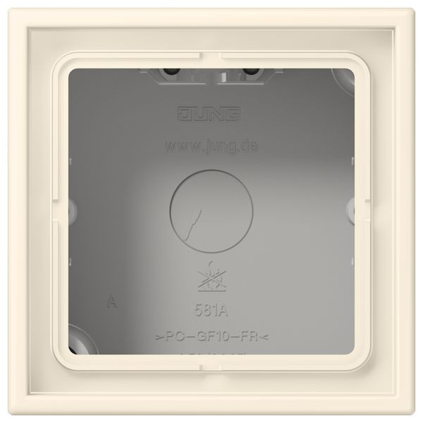 | Kurzbeschreibung | Aufputz-Kappe 1fach, LS CUBE, Duroplast lackiert, blanc ivoire (4320B), senkrechte und waagerechte Montage |