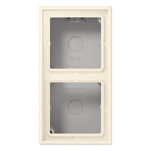 | Kurzbeschreibung | Aufputz-Kappe 2fach, LS CUBE, Duroplast lackiert, blanc ivoire (4320B), senkrechte und waagerechte Montage |
