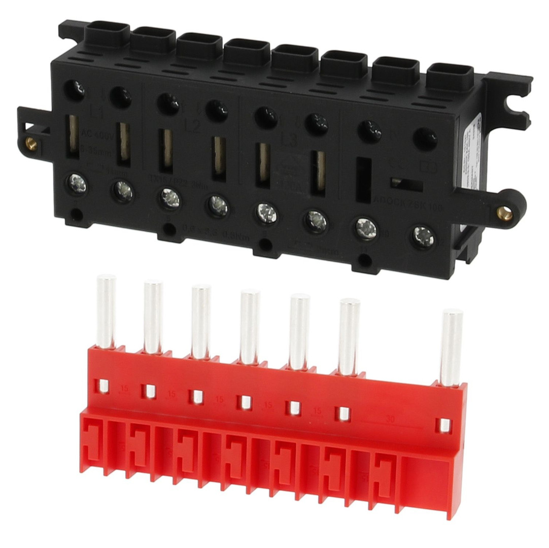 ADOCK Zähleranschlussklemme 100A mit TRE-Anschlussklemmen im Set mit Systemstiften