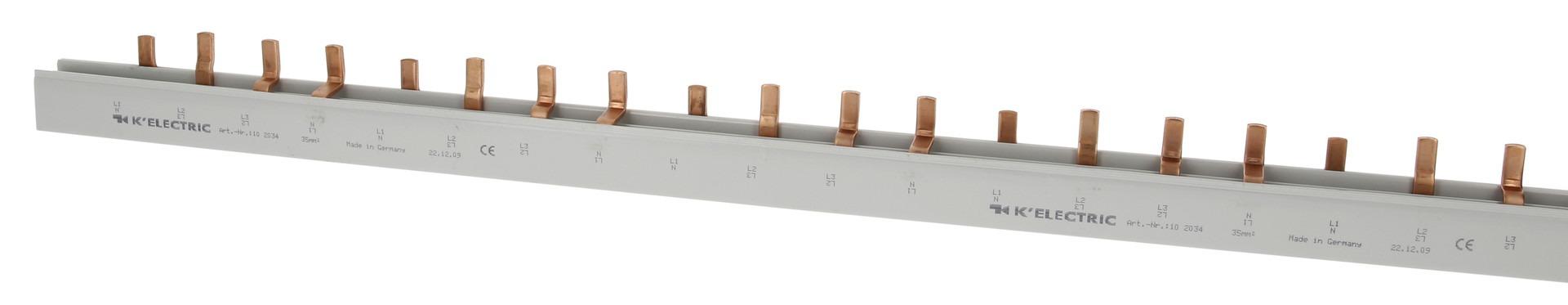 | Kurzbeschreibung | Steg-Verdrahtungsschiene, 4-polig, 35mm², 36TE, 27mm, zzgl. Metallzuschläge |